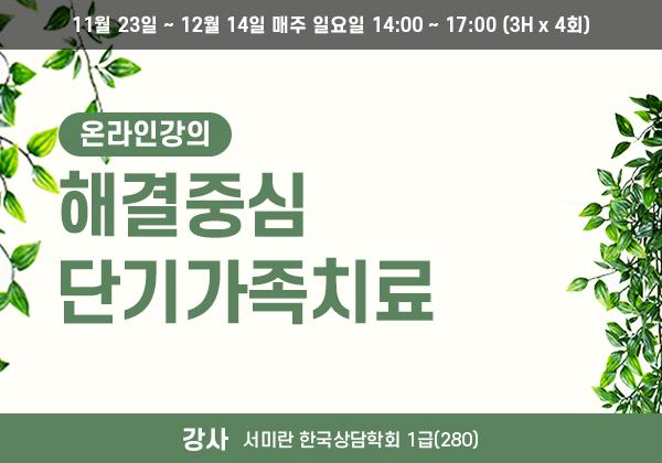 해결중심 단기가족치료의 인지적 특성과 내담자를 중심으로 한 공감적 특성을 어떻게 잘 융합시켜 상담 진행을 하는지에 대해 잘 배운 유익한 시간이었습니다