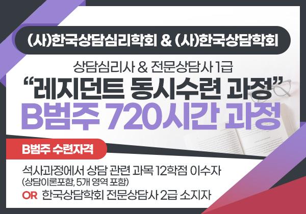 (사)한국상담학회&(사)한국상담심리학회 동시수련 "레지던트 수련과정" B범주 720시간